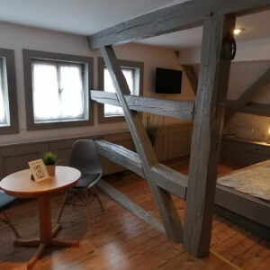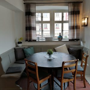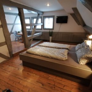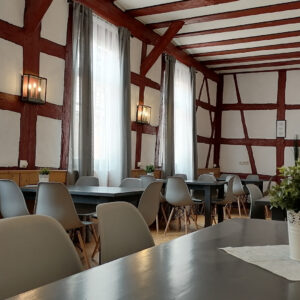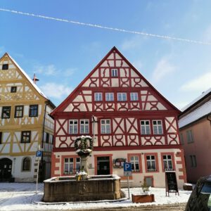 In Mitten der historischen Altstadt Prichsenstadts, direkt am schönen Stadtbrunnen, liegt unser kleines aber feines Hotel. In einem der ältesten Häuser der Stadt, wohl aus dem Jahre 1242 – möchten wir Sie mit fränkischer Gemütlichkeit und herzlicher Gastfreundschaft überzeugen. Liebevoll restauriert, erleben Sie in unseren individuell eingerichteten Zimmern den Charme des historischen Fachwerkhauses hautnah. Unser uriger Gastraum mit original erhaltener Schmiede lädt zum Verweilen ein. Im großzügigen Frühstücksraum genießen Sie kulinarische Köstlichkeiten in der ehemaligen Zehntscheune.